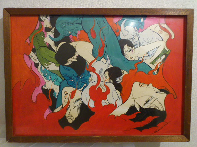 これがその一枚。たぶん「悪魔のようなあいつ」の頃でしょうか。この頃、悪魔と女の絡みたくさん描いてましたから。とにかくすごい妖気なので、是非生を観にいらしてください。
