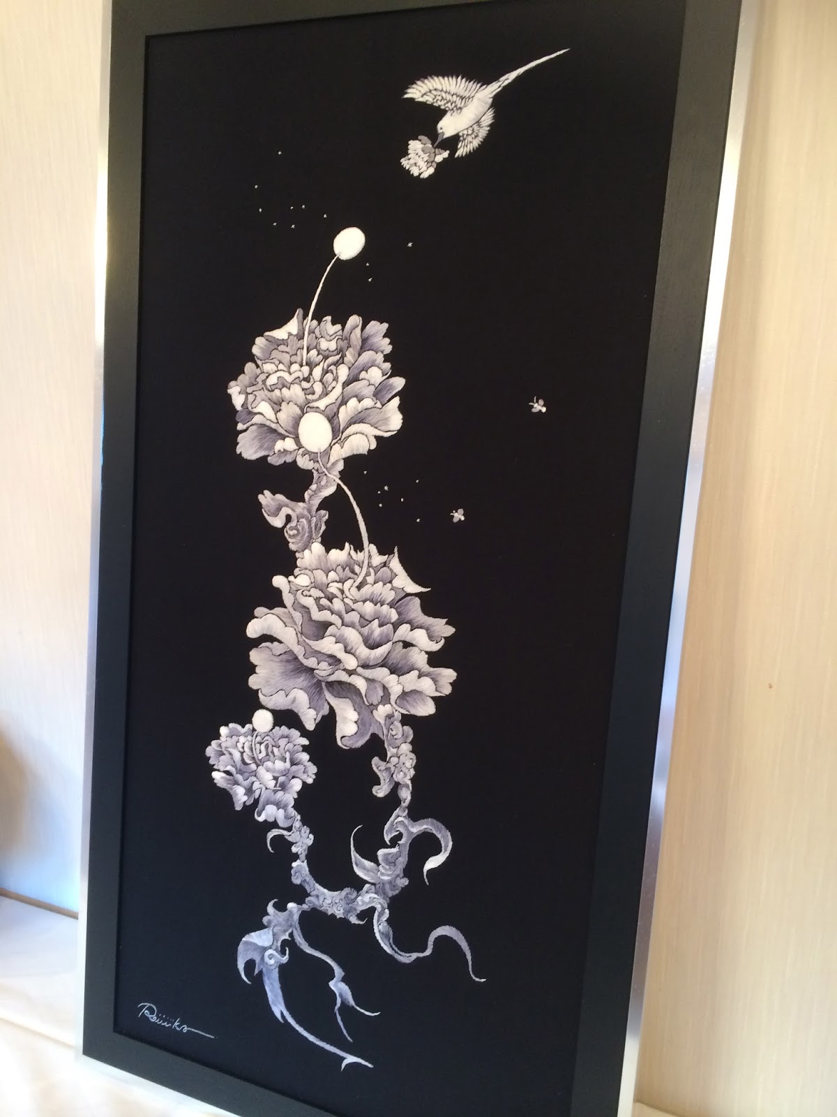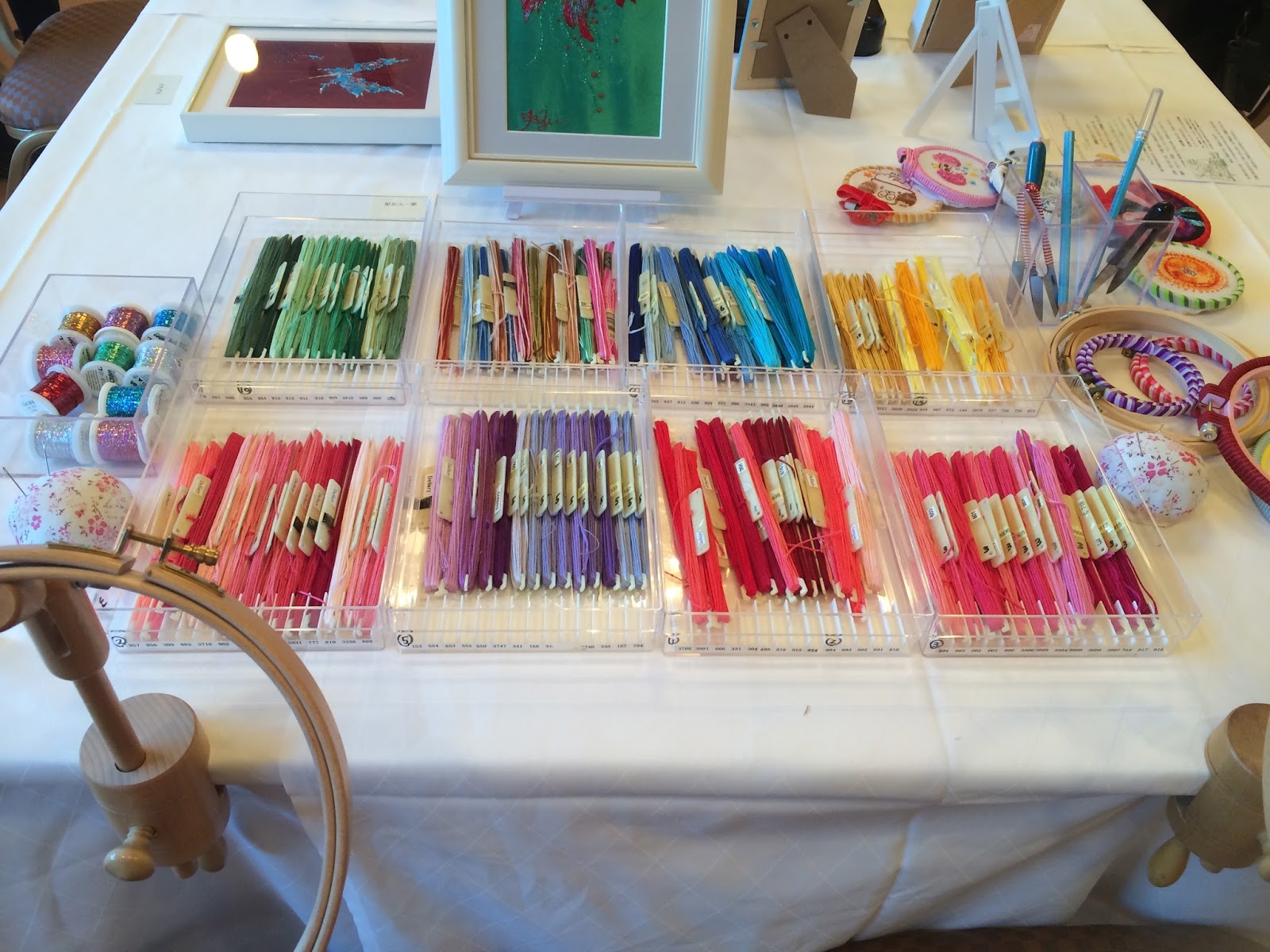 刺繍って美しい!と思わずにはいられない美しい作品の数々、なんといってもご主人であるバロン先生の作品とコラボレーションしているところがまた美しい。愛娘のエミリーちゃんもアーティスト活動をされているのですが、ご両親のお仕事もしっかりサポートしていて、いつも会場では家族愛のお裾分けをしていただいています。